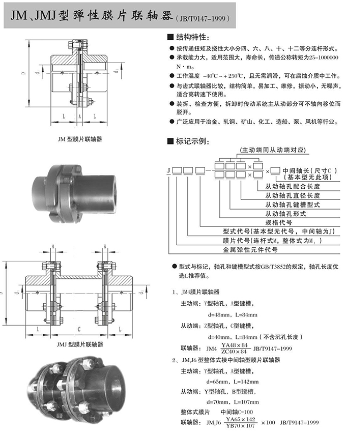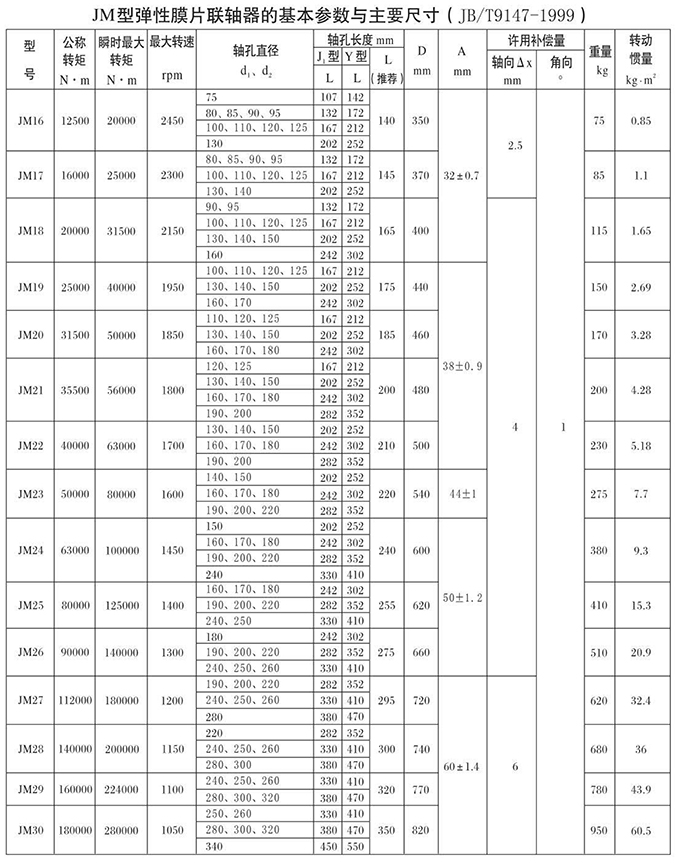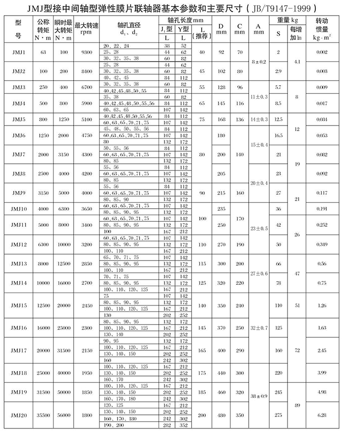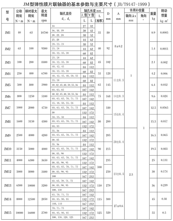 瑞安市寶德隆機械配件有限公司提供JM、JMJ型彈性膜片聯(lián)軸器具有拆裝方便,快速安裝等特點,廣泛用于連接/固定輪轂孔和零件的軸,例如齒輪,錐齒輪,鏈輪,葉輪,凸輪,皮帶輪和飛輪等軸的聯(lián)結(jié)固定,咨詢電話:18906872378