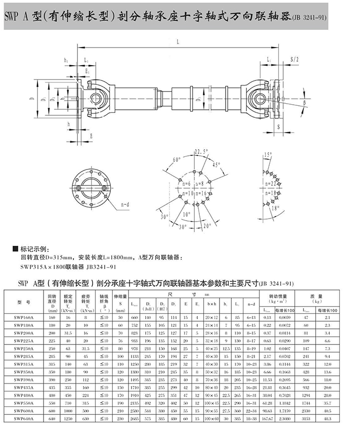 SWP A型(有伸縮長型)部分軸承座十字軸式萬向聯軸器